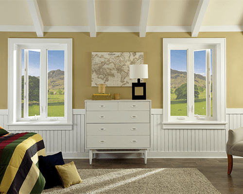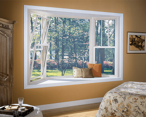 Vinyl bay and bow windows enable you to create window seats, breakfast nooks and other options. You can choose from a variety of styles, from 3- to 5-lites, or select double hung or casement windows to flank the middle picture. The flankers open to provide ventilation. Bay and bow windows arrive completely assembled and are simple to install and customize.